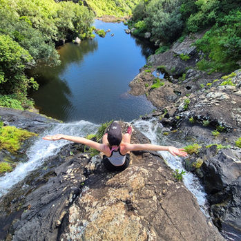 The “7 waterfalls” are not just a single viewpoint, but a chain of cascading falls flowing through a deep tropical valley. As you explore, each level reveals something new—crystal-clear pools, dramatic drops, and panoramic views over the surrounding forest and coastline.