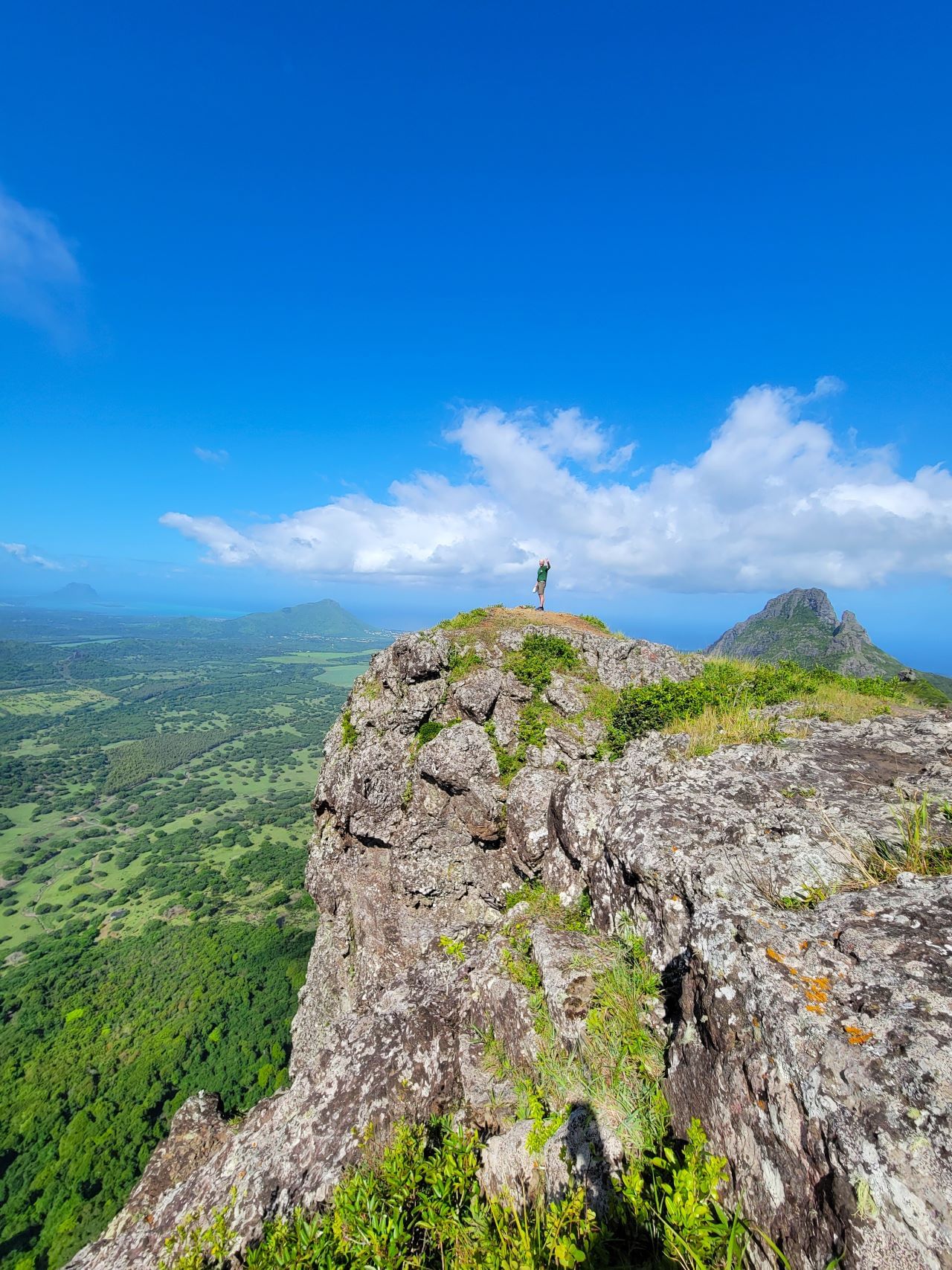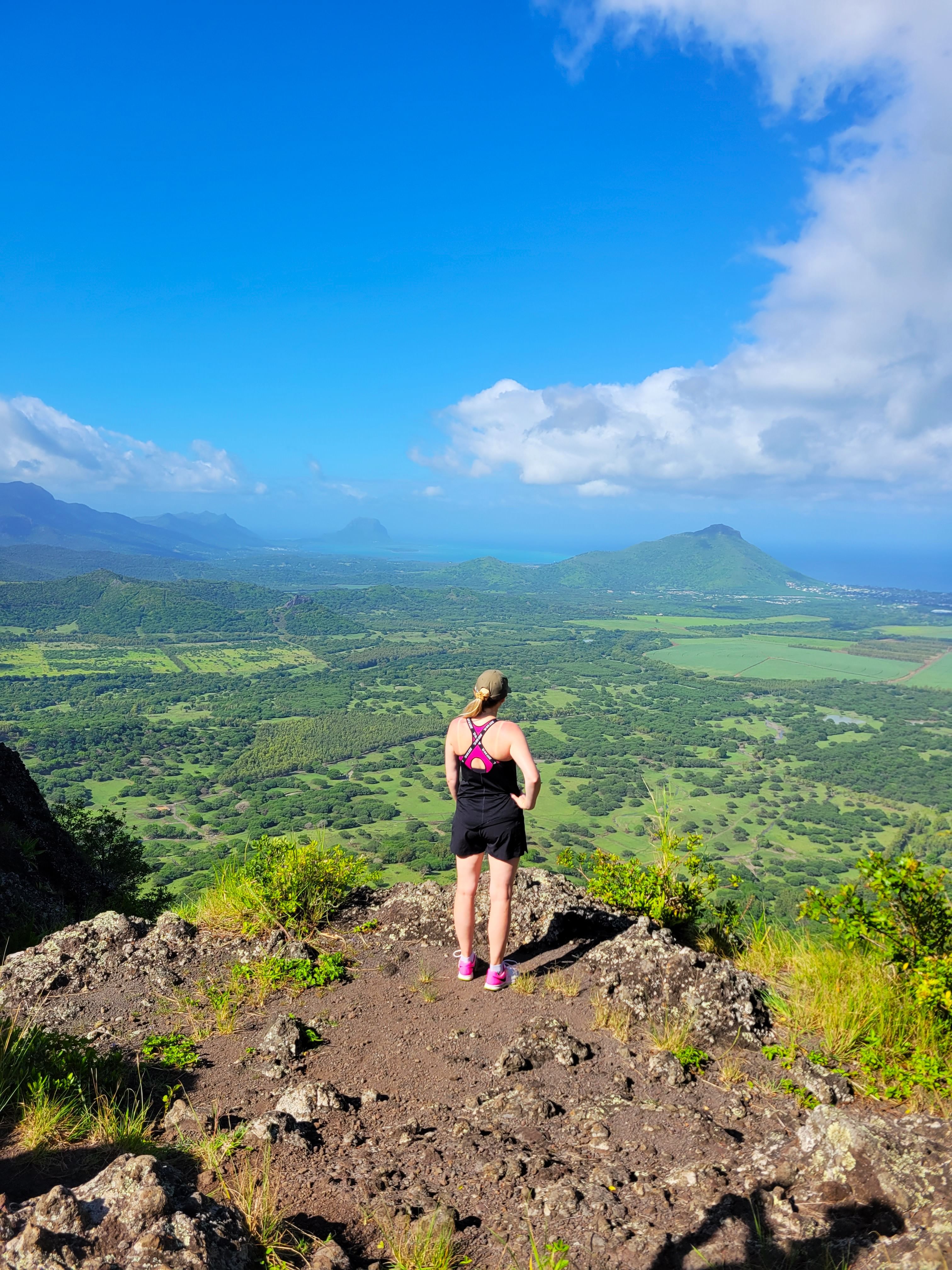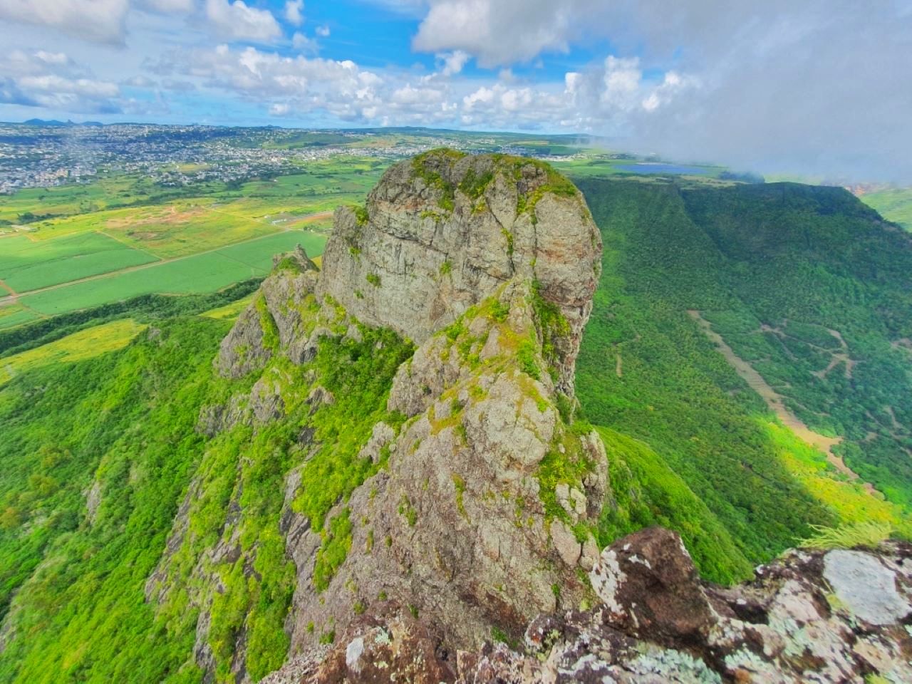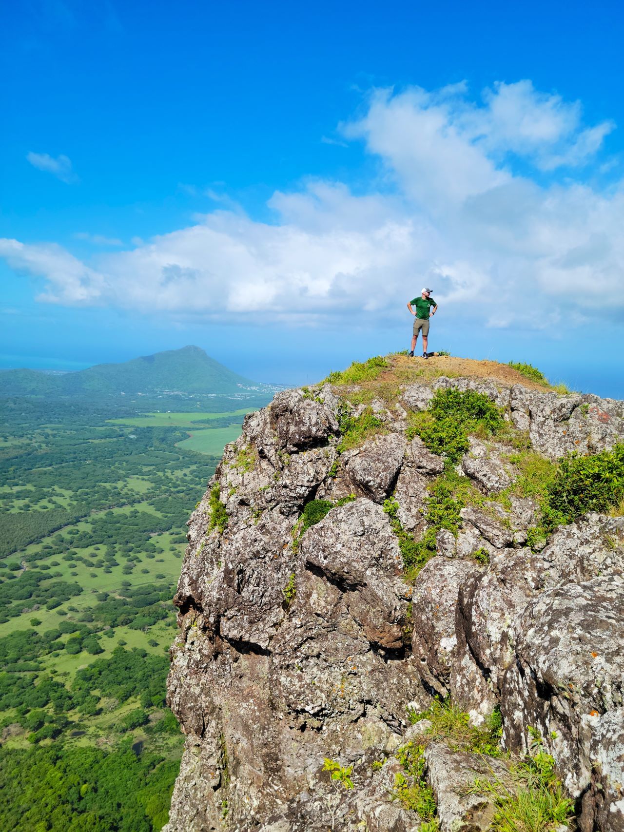 As you ascend, the scenery transforms — from dense vegetation and open ridgelines to panoramic views of the island’s rolling hills, sugarcane fields, and turquoise lagoons below. The summit offers a breathtaking 360° panorama, a moment of pure triumph for every adventurer.